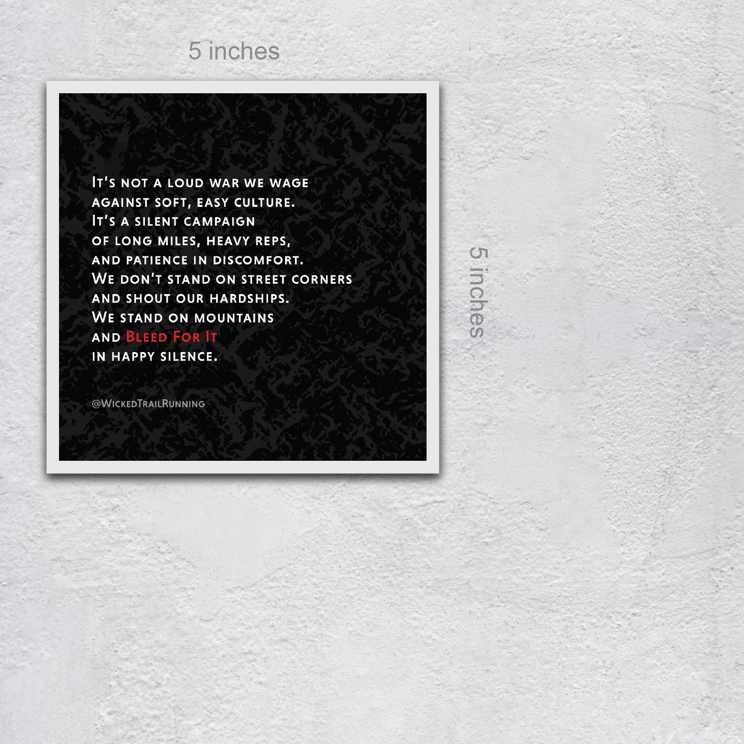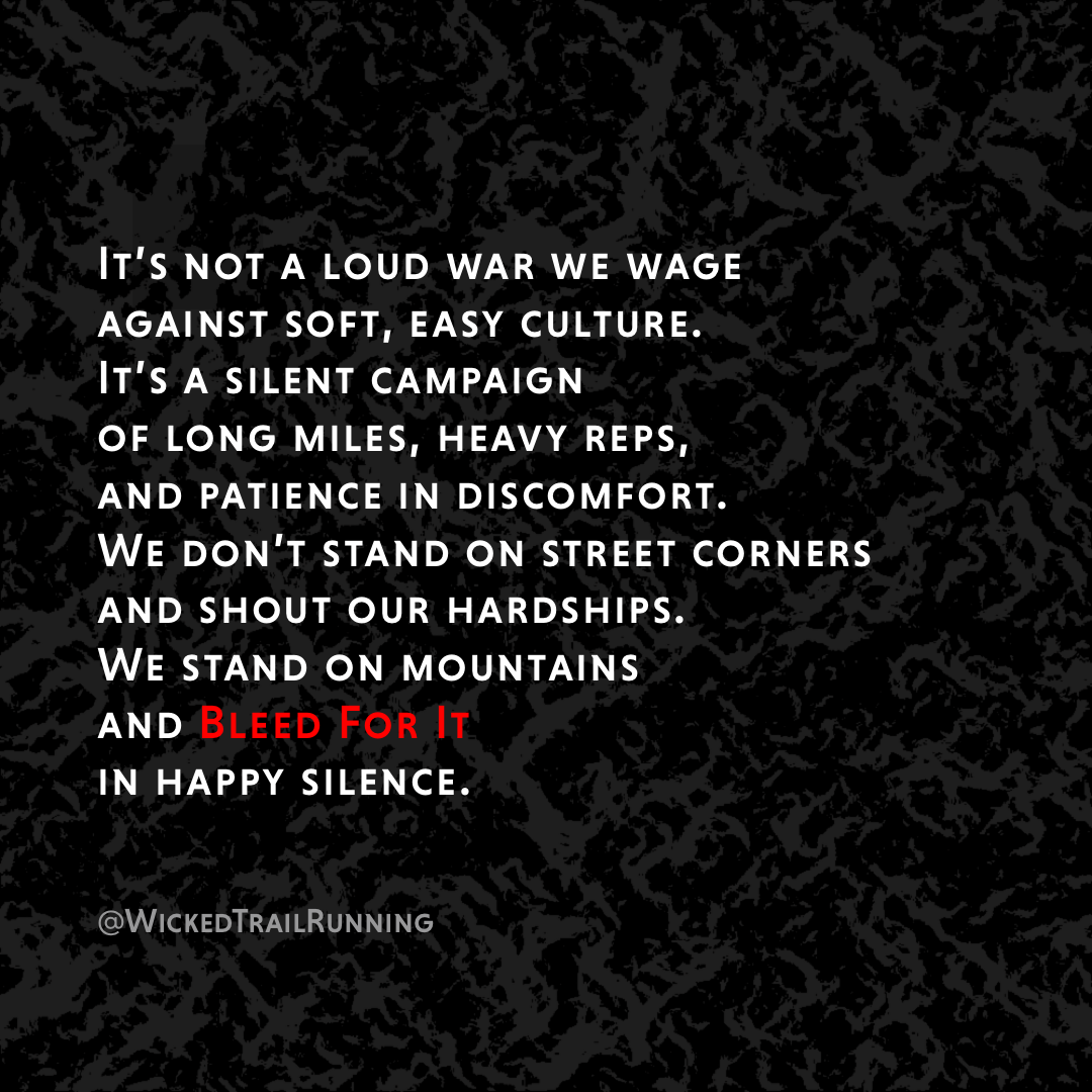 It is not a loud war we wage against soft, easy culture… Bleed For It.