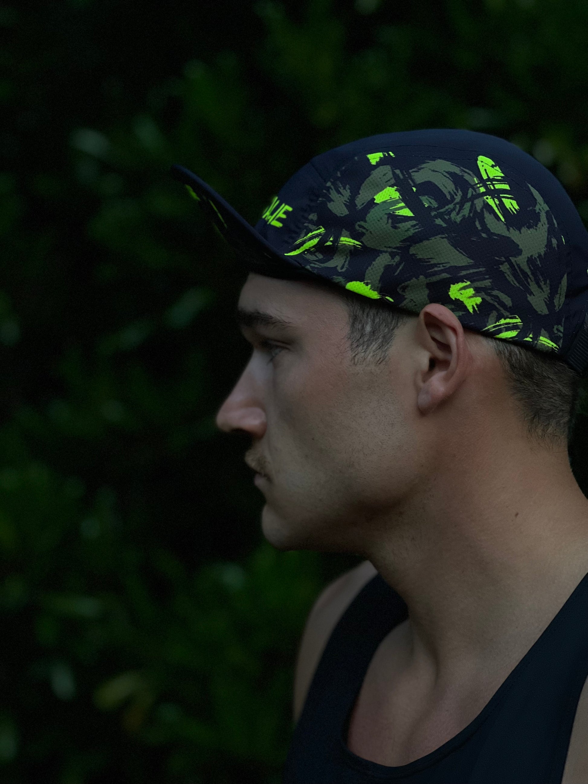 High-quality camo brush pattern running hat.