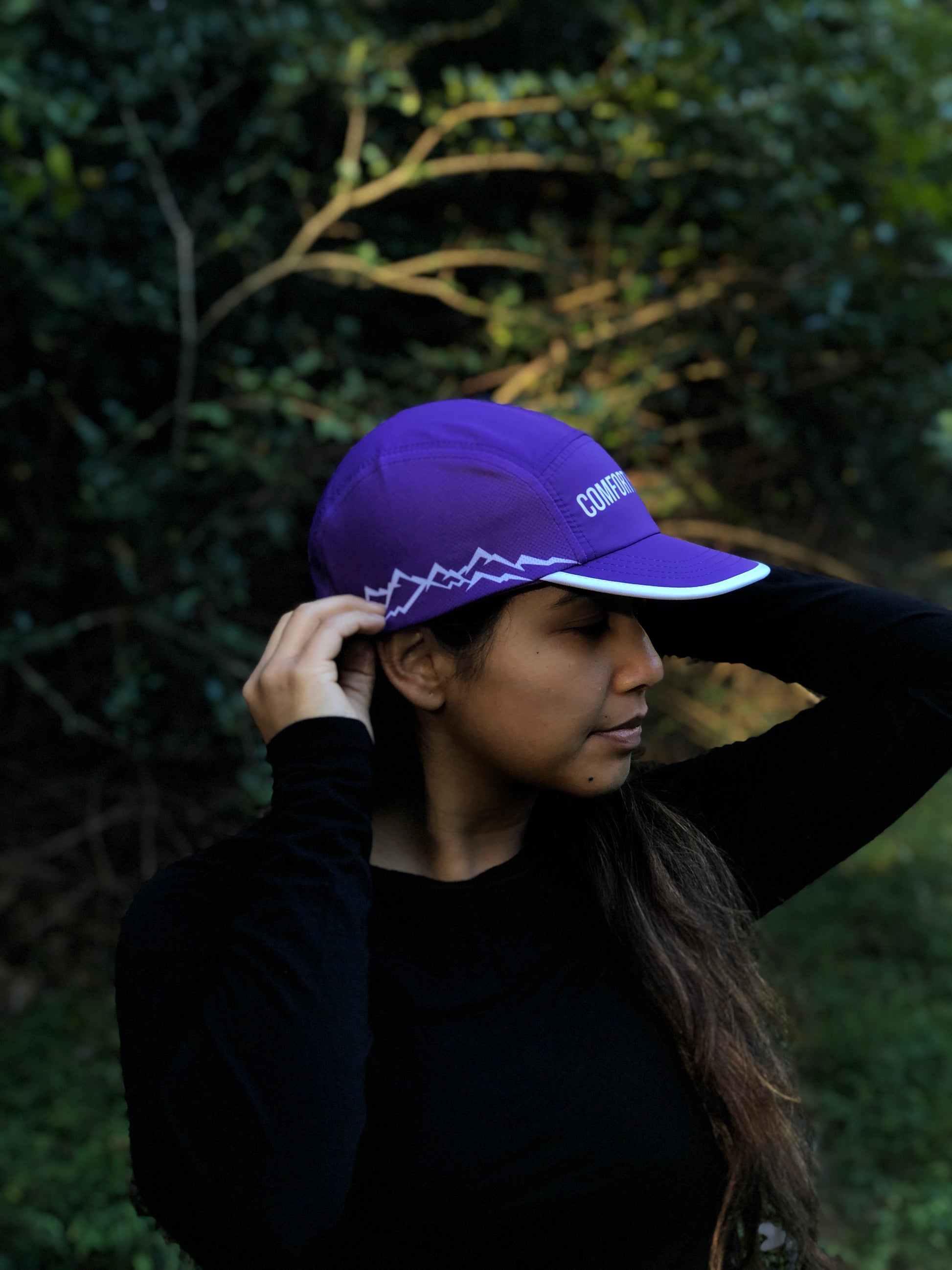 Loved the dark purple color way and the powerful message. A perfect trail hat to soak up the miles in