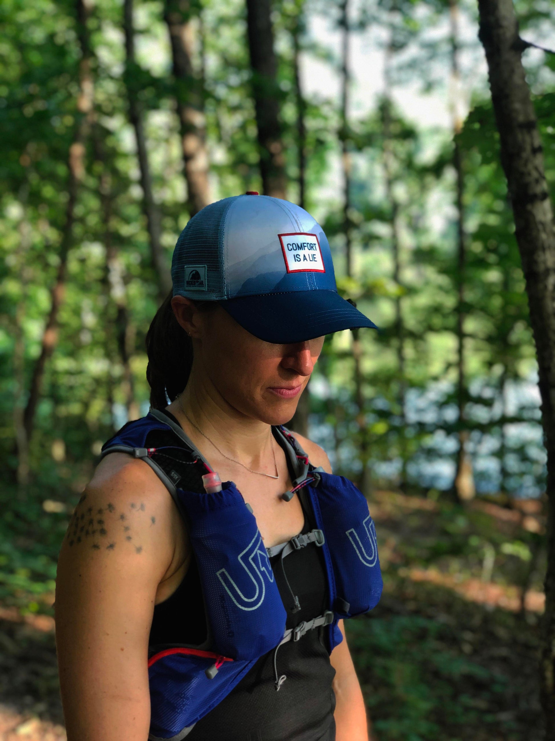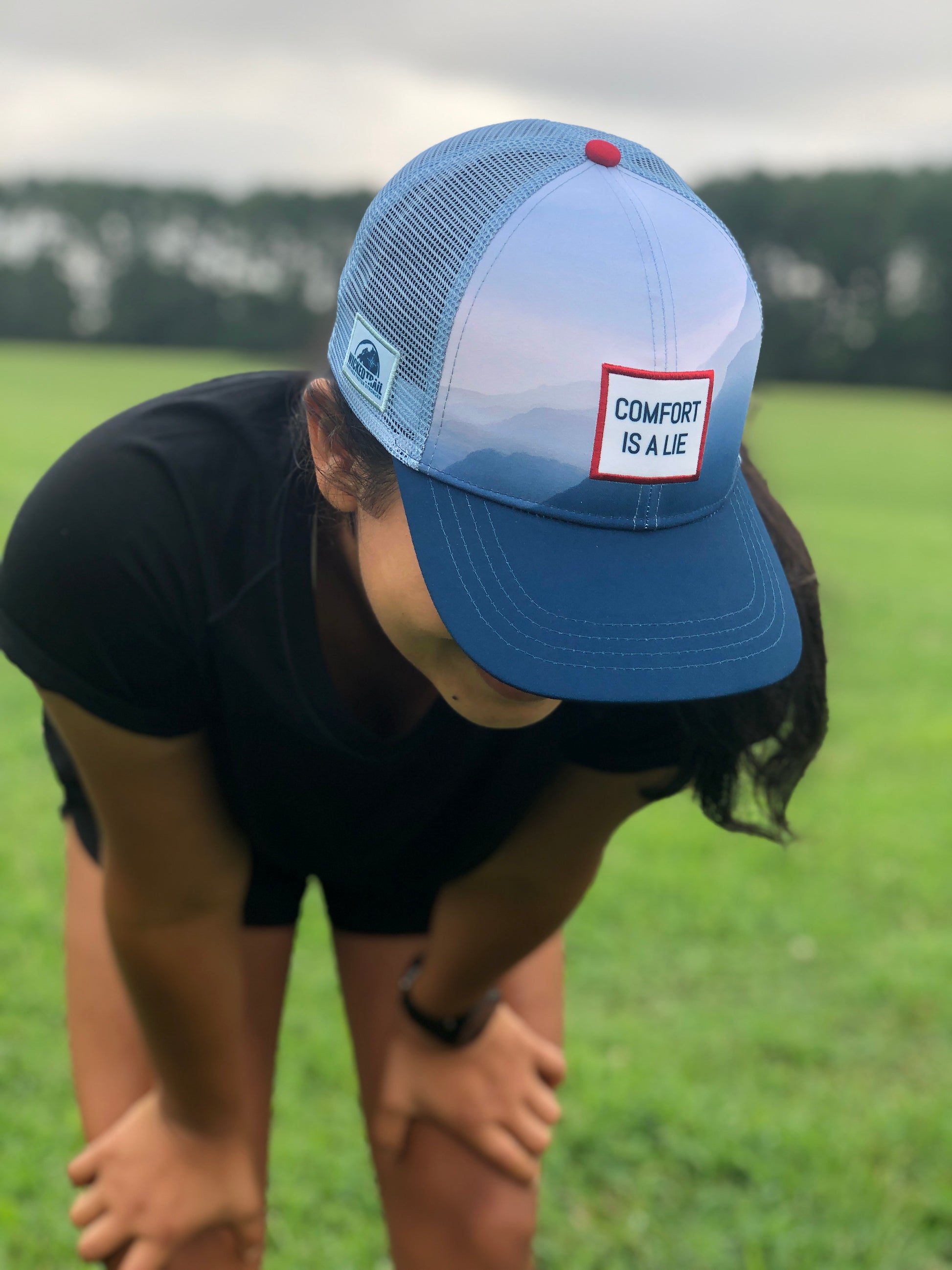 After pacing my friend the last 30 miles of the TGNY 100 miler, I gave myself the gift of the blue “Comfort is a lie” trucker hat. It’s a cool hat and I love having the mantra in my head when I’m logging the miles. I recommend it to anyone who loves running and hats!